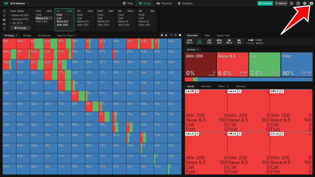 - レンジビルダー – 異なるシナリオにおけるGTOレンジを作成。
